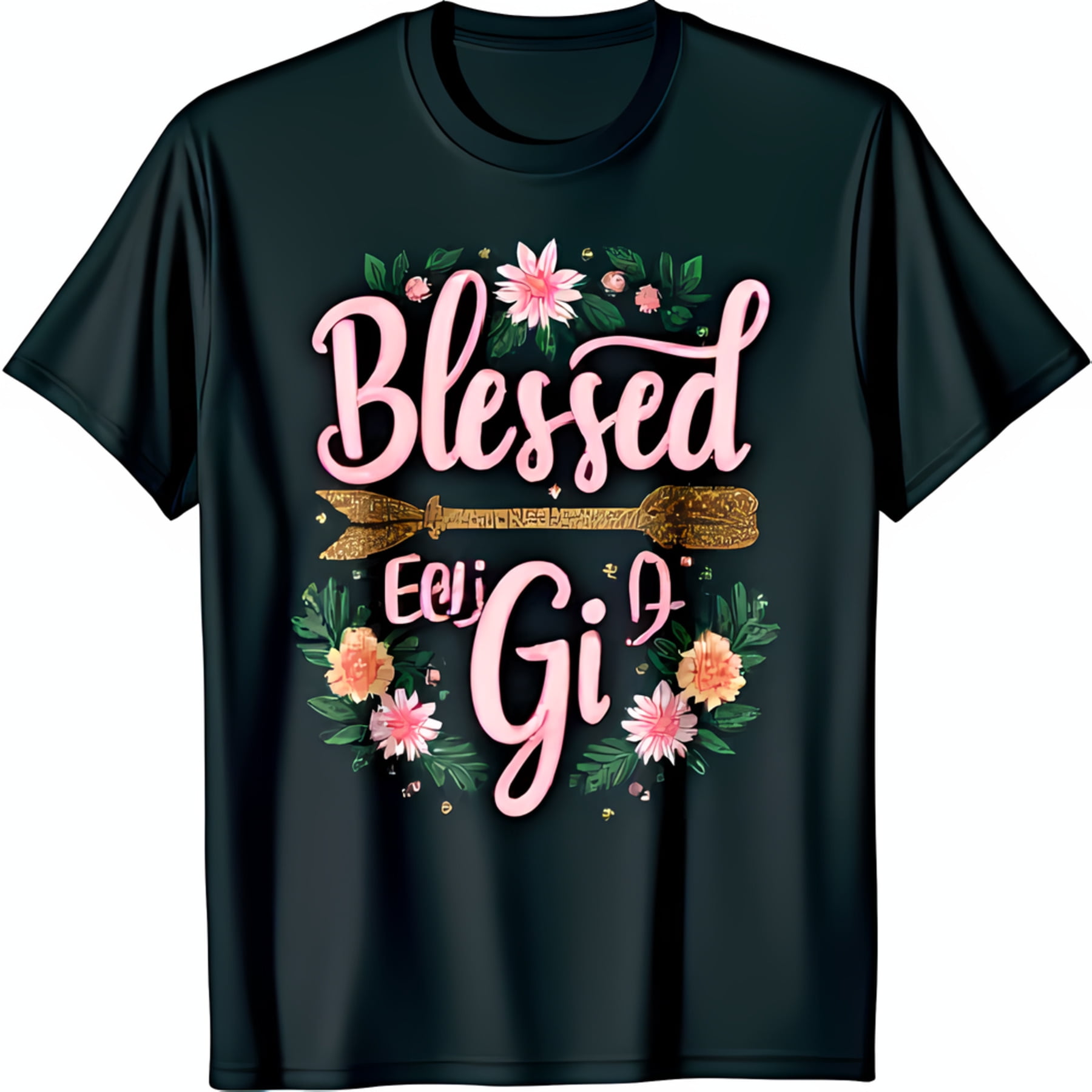 Stylish Black T-Shirt with ‘Blessed Girl’ Pink Script Graphic & Floral Design
