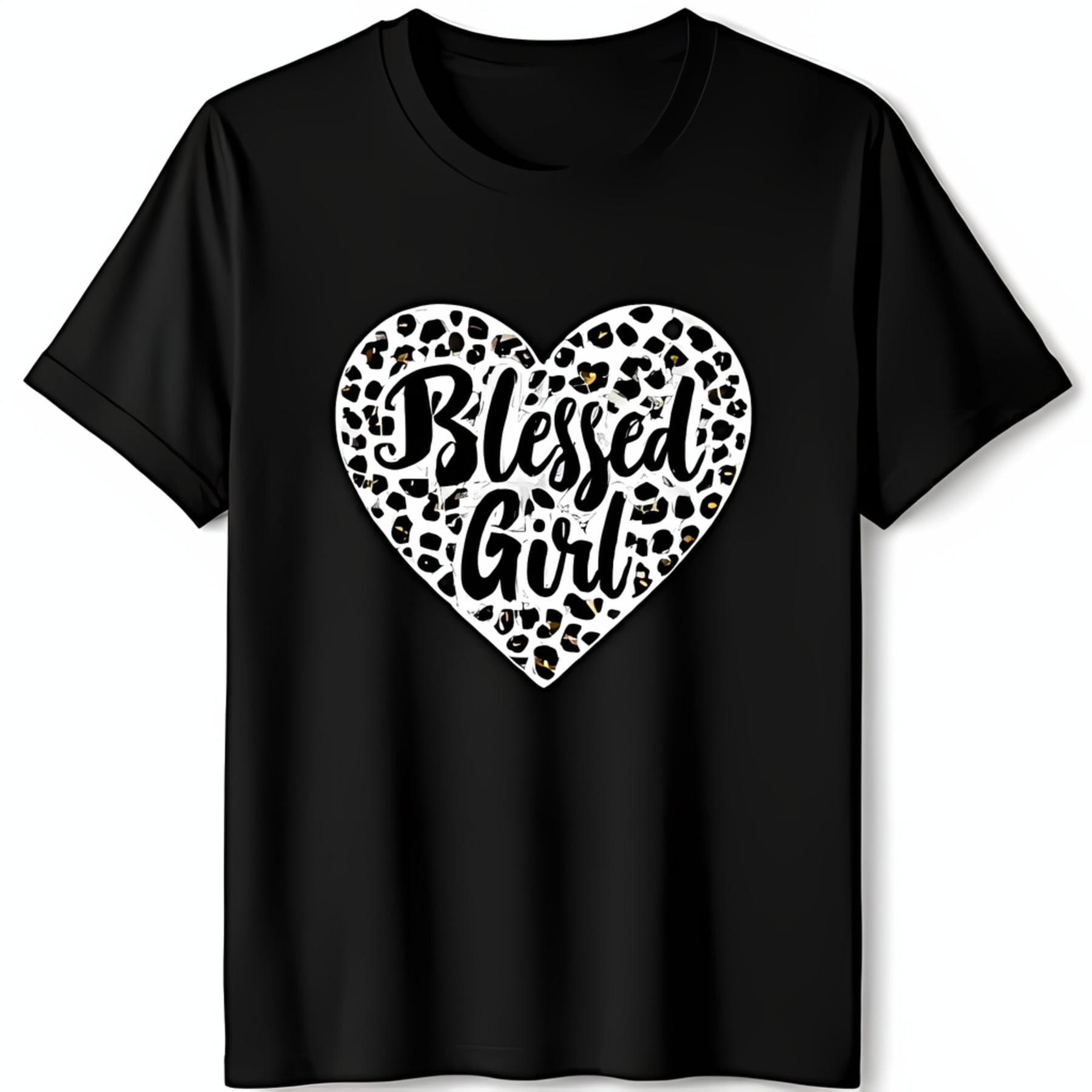 Stylish Black T-Shirt with Print Heart Graphic & ‘Blessed Girl’ Design