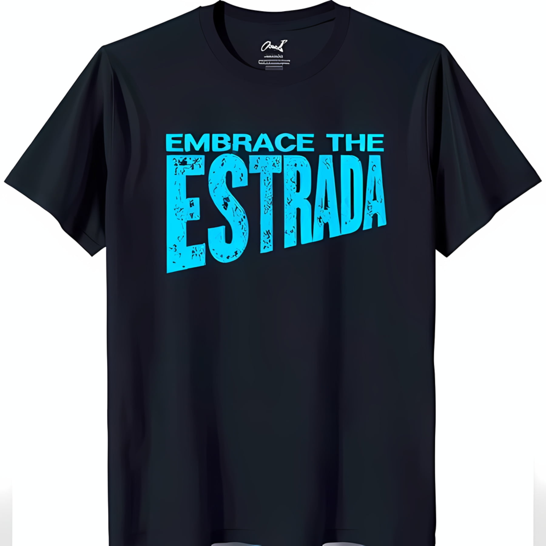 Vintage Style Black T-Shirt with ‘EMBRACE THE ESTRADA’ in Blue